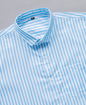 The classic sky blue and white striped pattern adds a fresh and refined touch, making it ideal for office wear, formal occasions, or smart-casual outings.