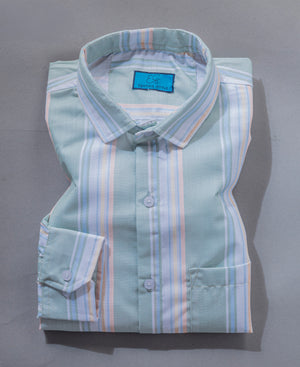 Fresh pastel green striped cotton shirt with pocket, perfect for casual and semi-formal wear.
