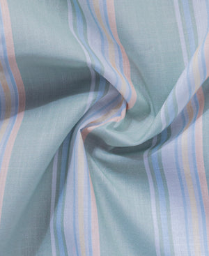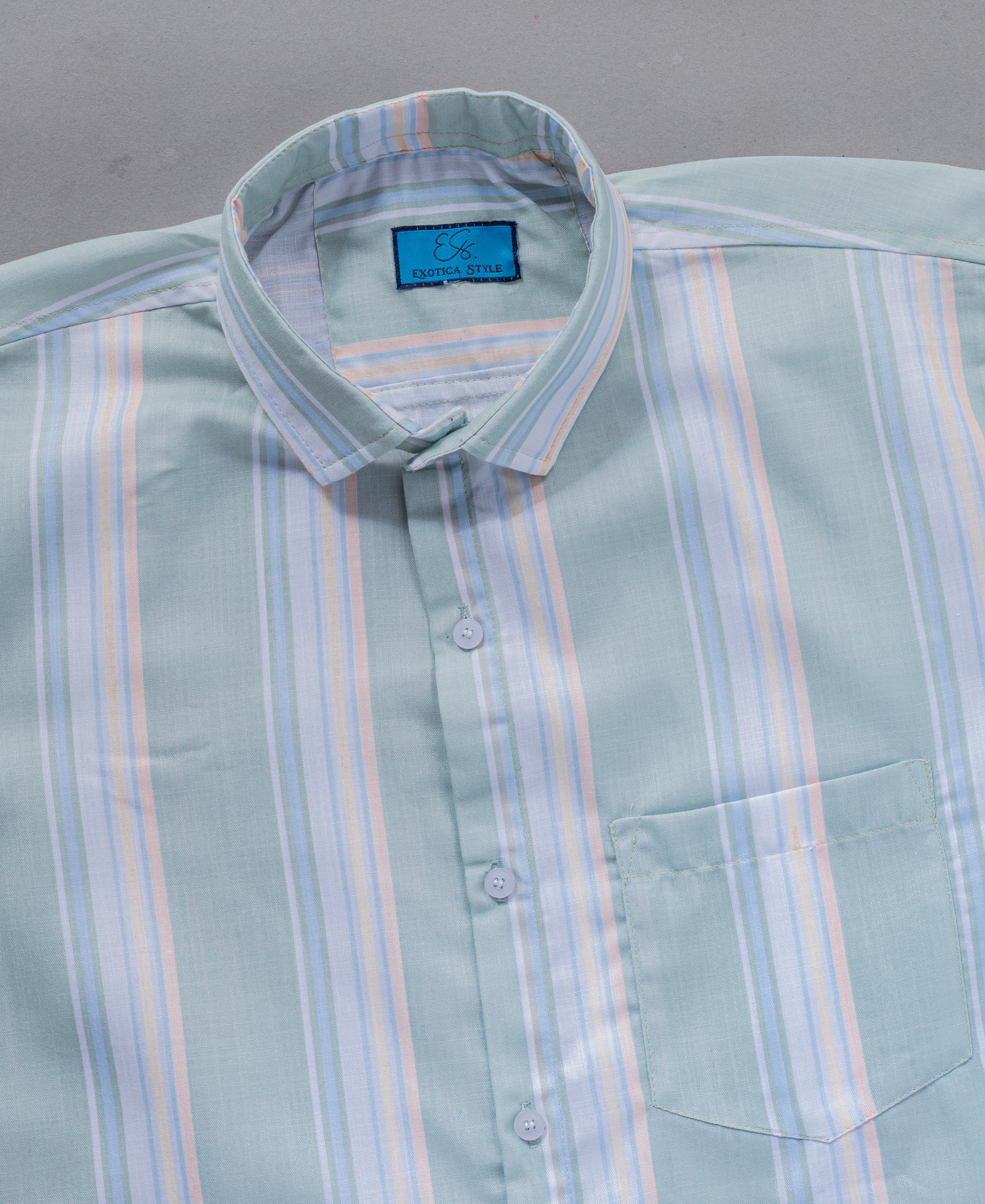 Men’s Pastel Green Striped Cotton Shirt with Pocket