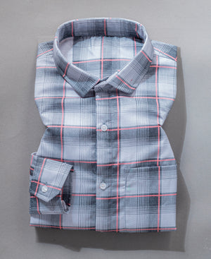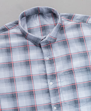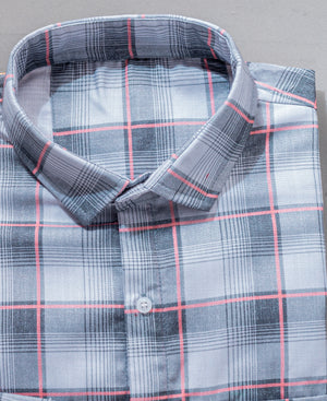 Men’s Grey & White Checked Cotton Shirt with Pocket