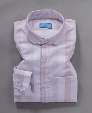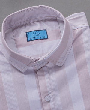 Men’s Light Cream & White Striped Cotton Shirt with Pocket