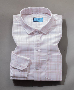 The pastel blush check pattern adds a subtle, elegant charm for casual outings or brunch wear.