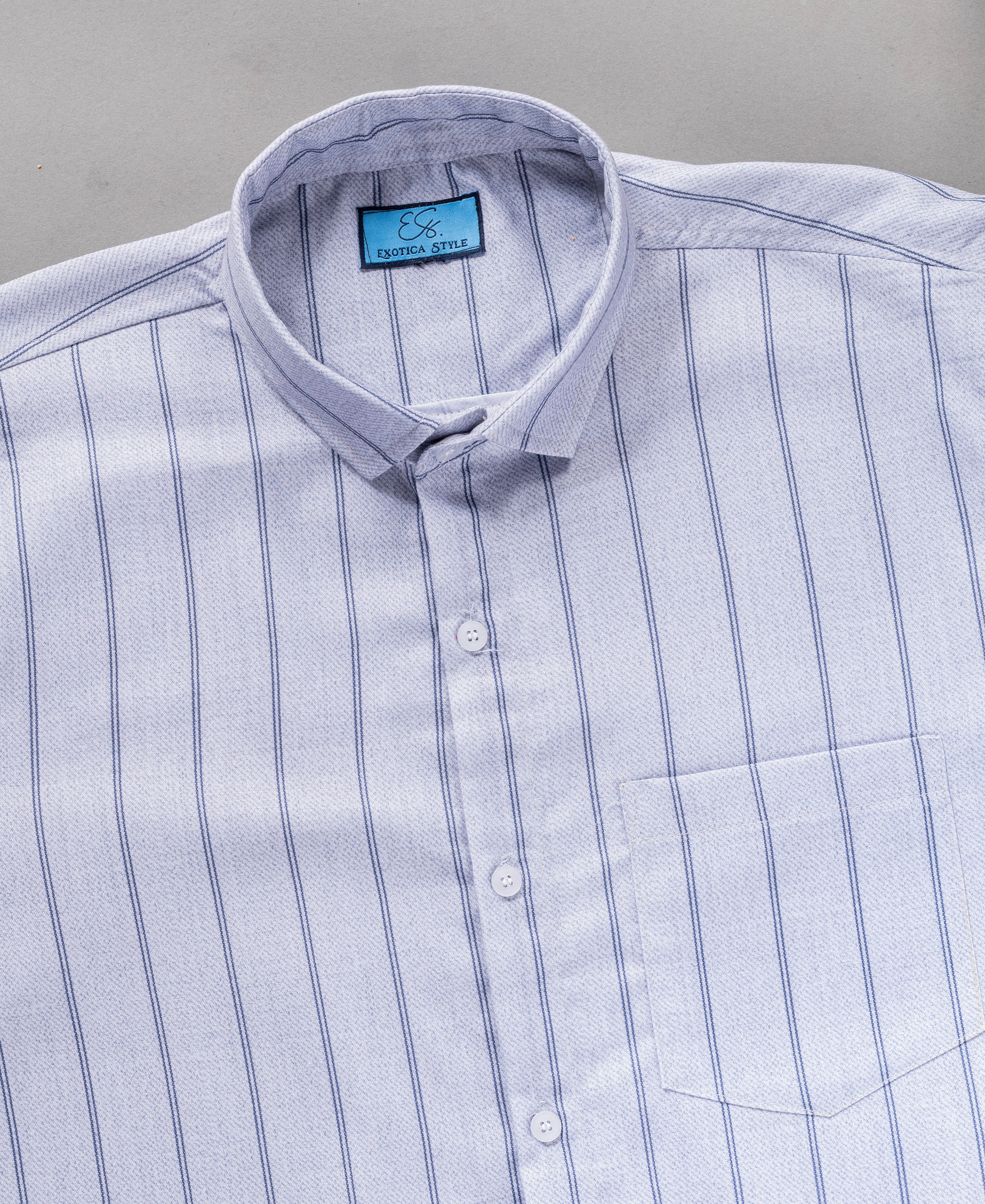 Regular Fit Cotton Shirt for Men with Gray Stripes