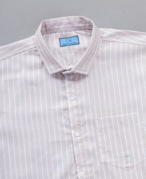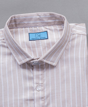 Beige and White Striped Cotton Shirt for Men Formal Wear