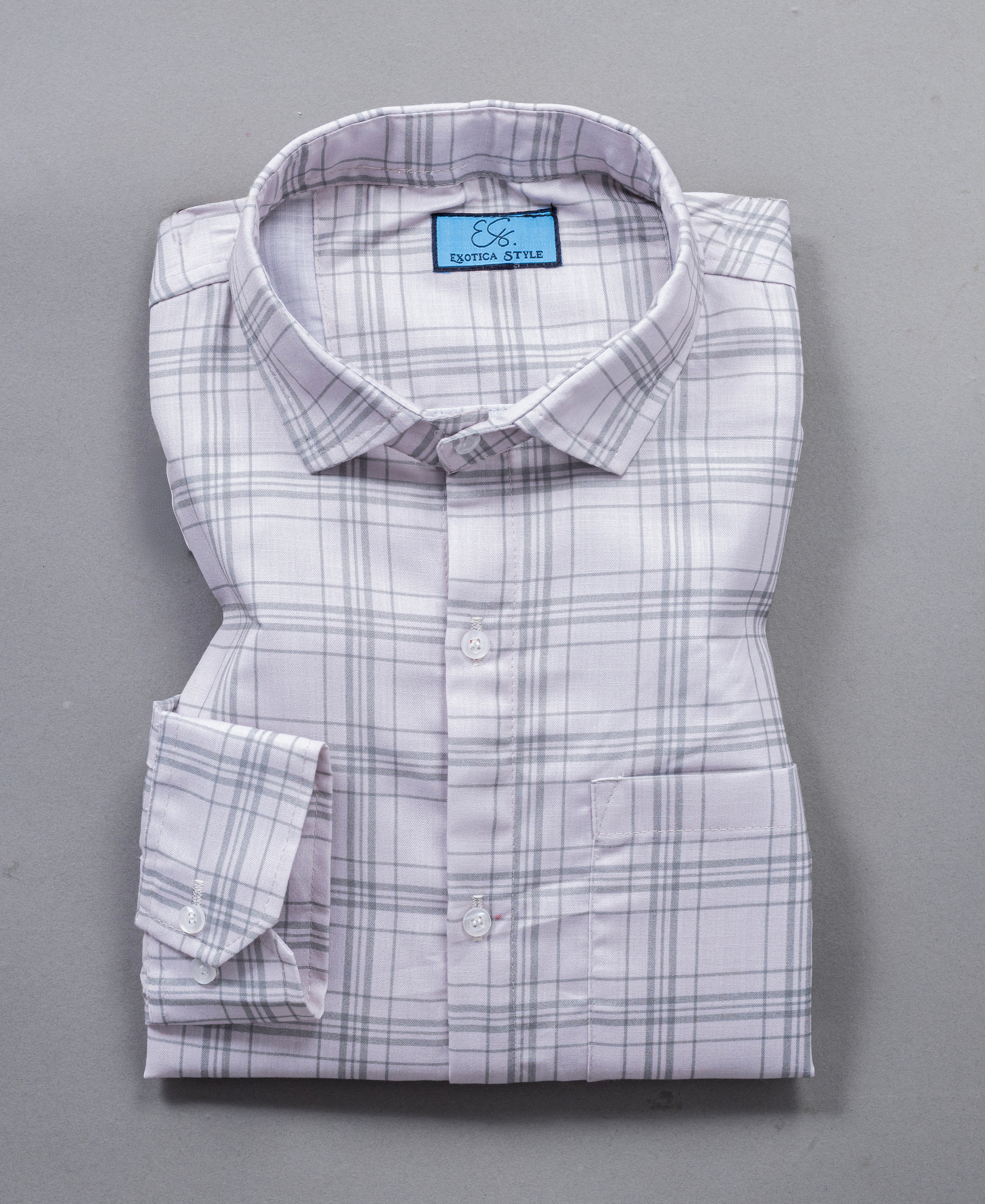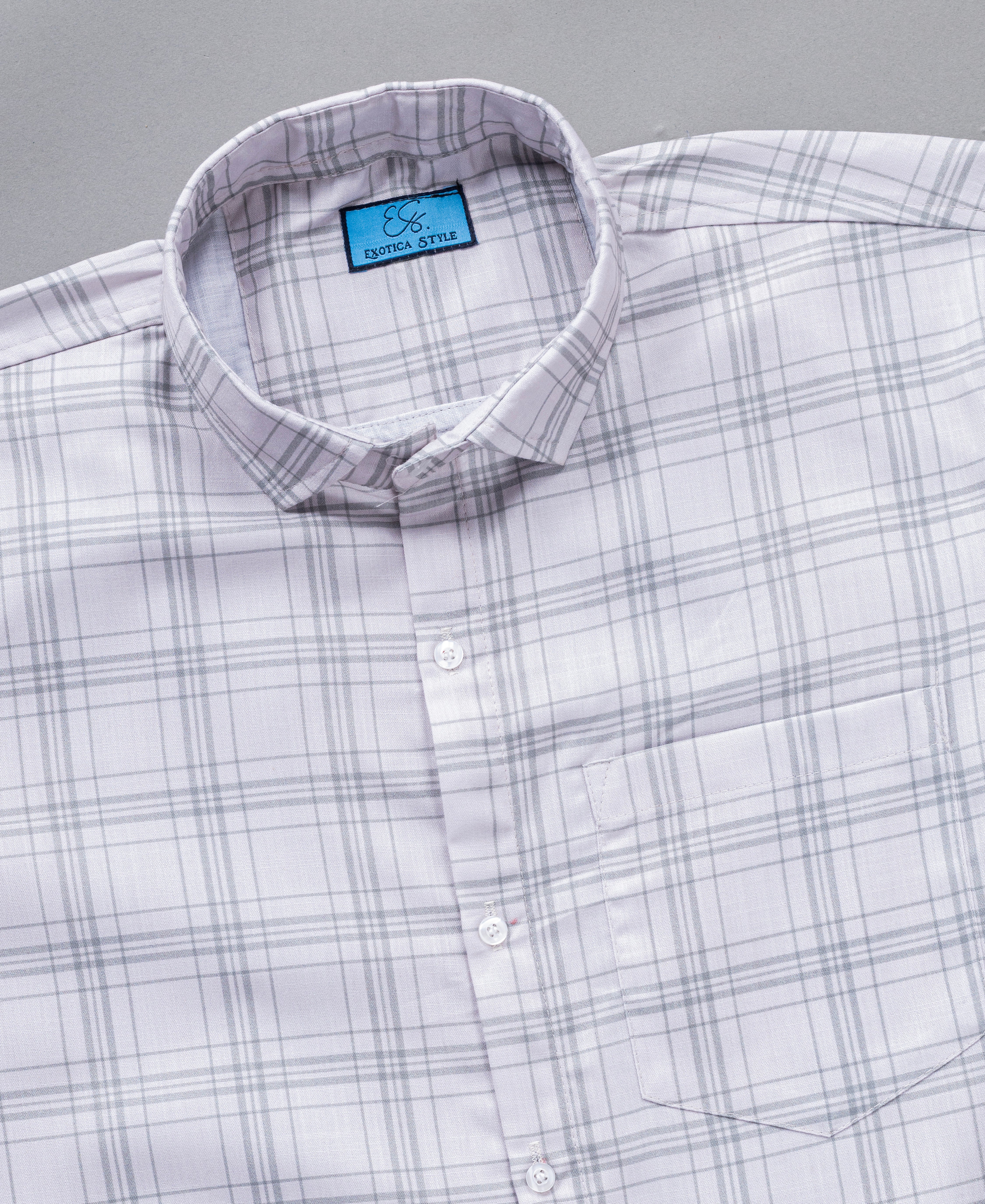 Classic beige cotton checked shirt with chest pocket, perfect for everyday comfort.