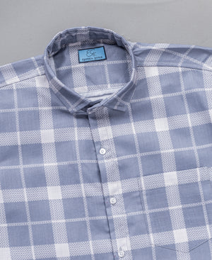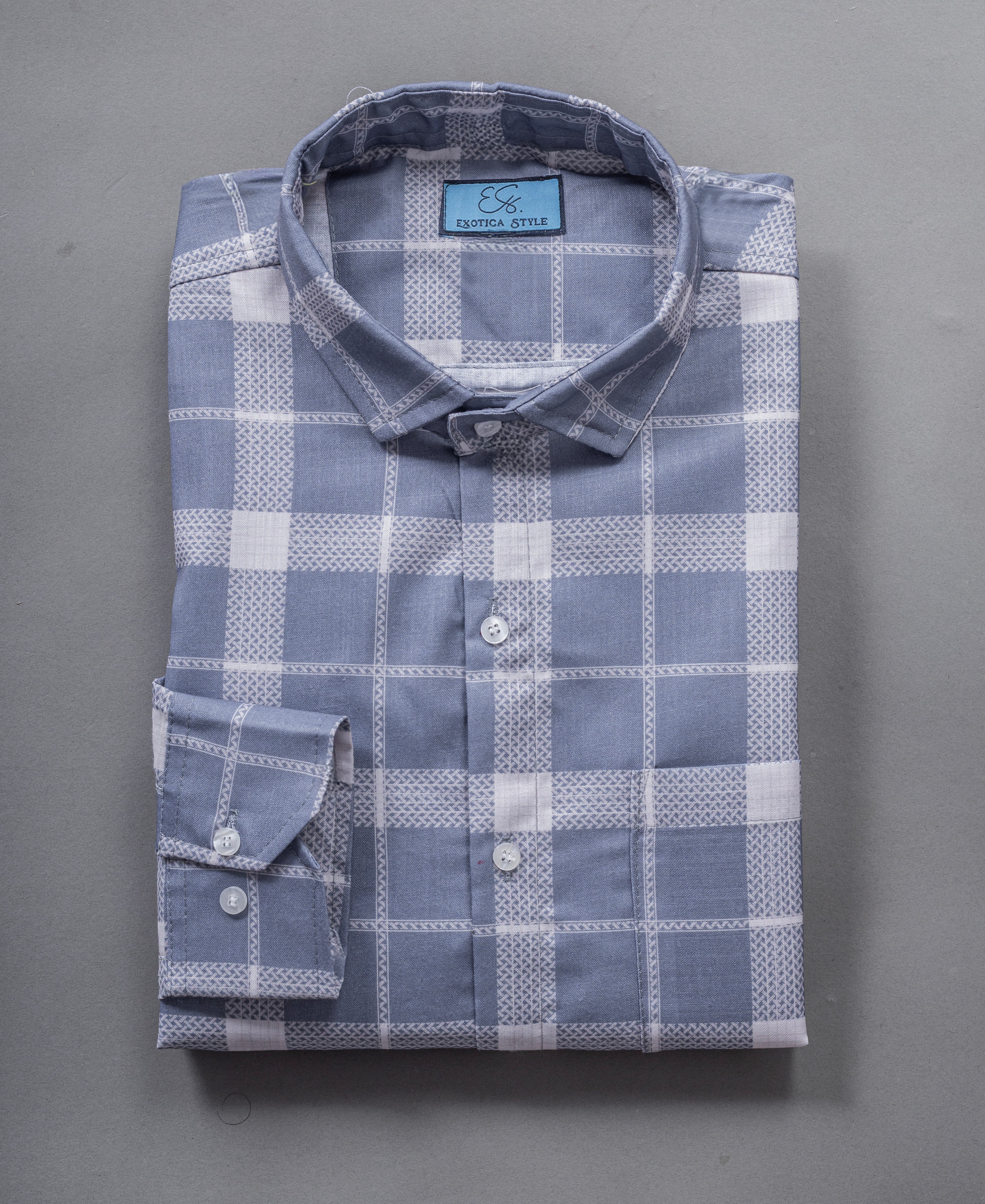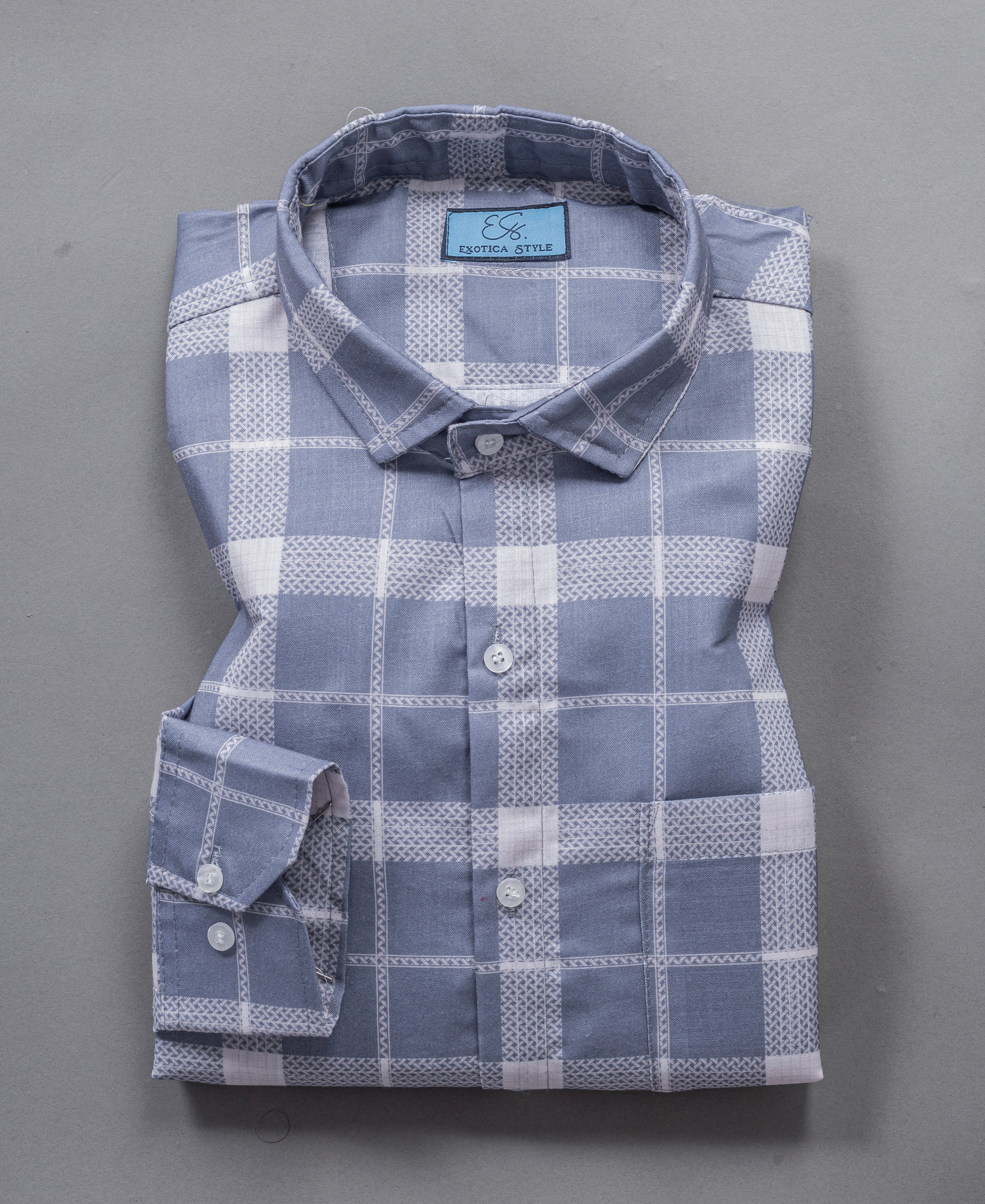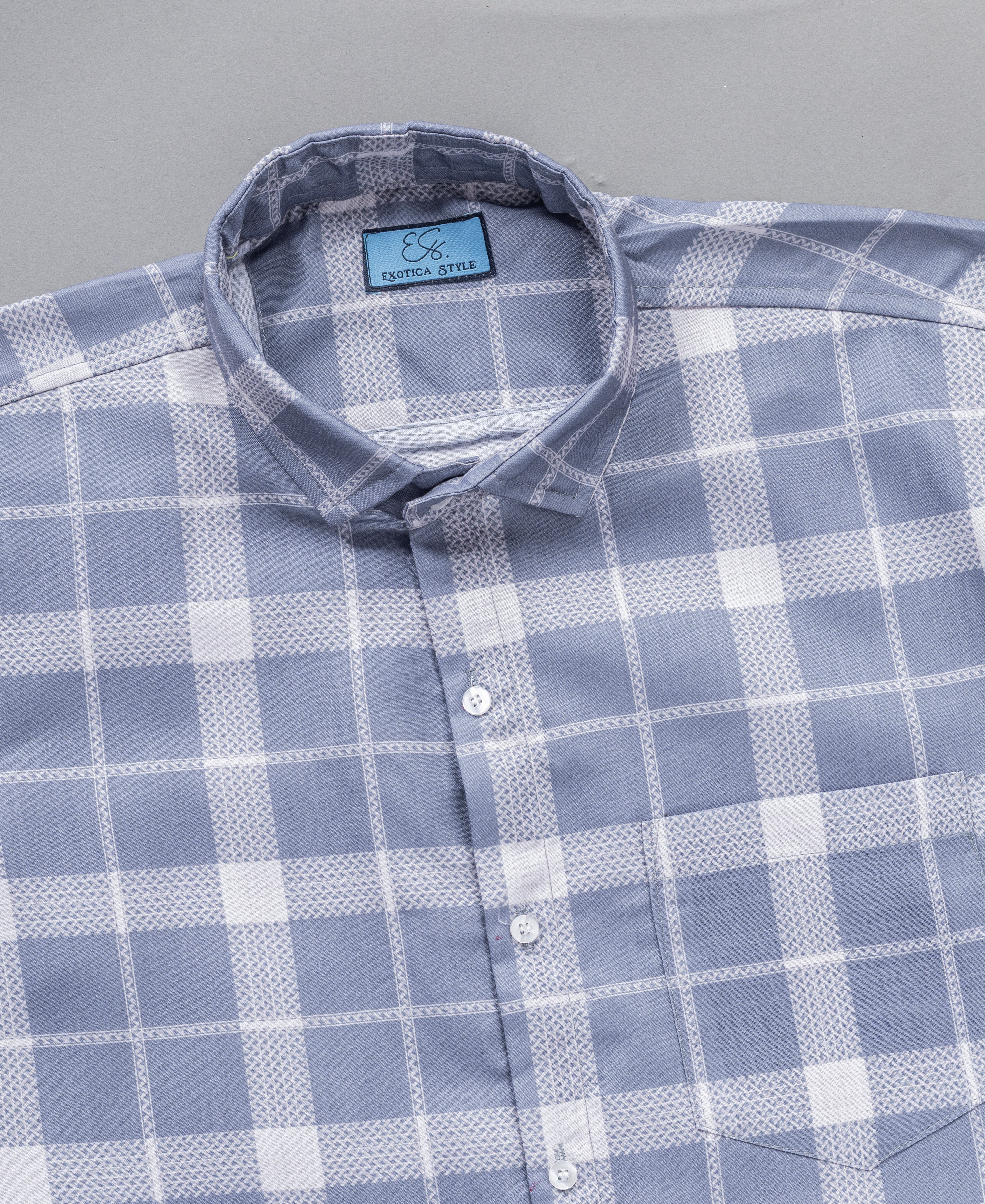 Gray and Beige Checked Cotton Shirt for Men with Pocket