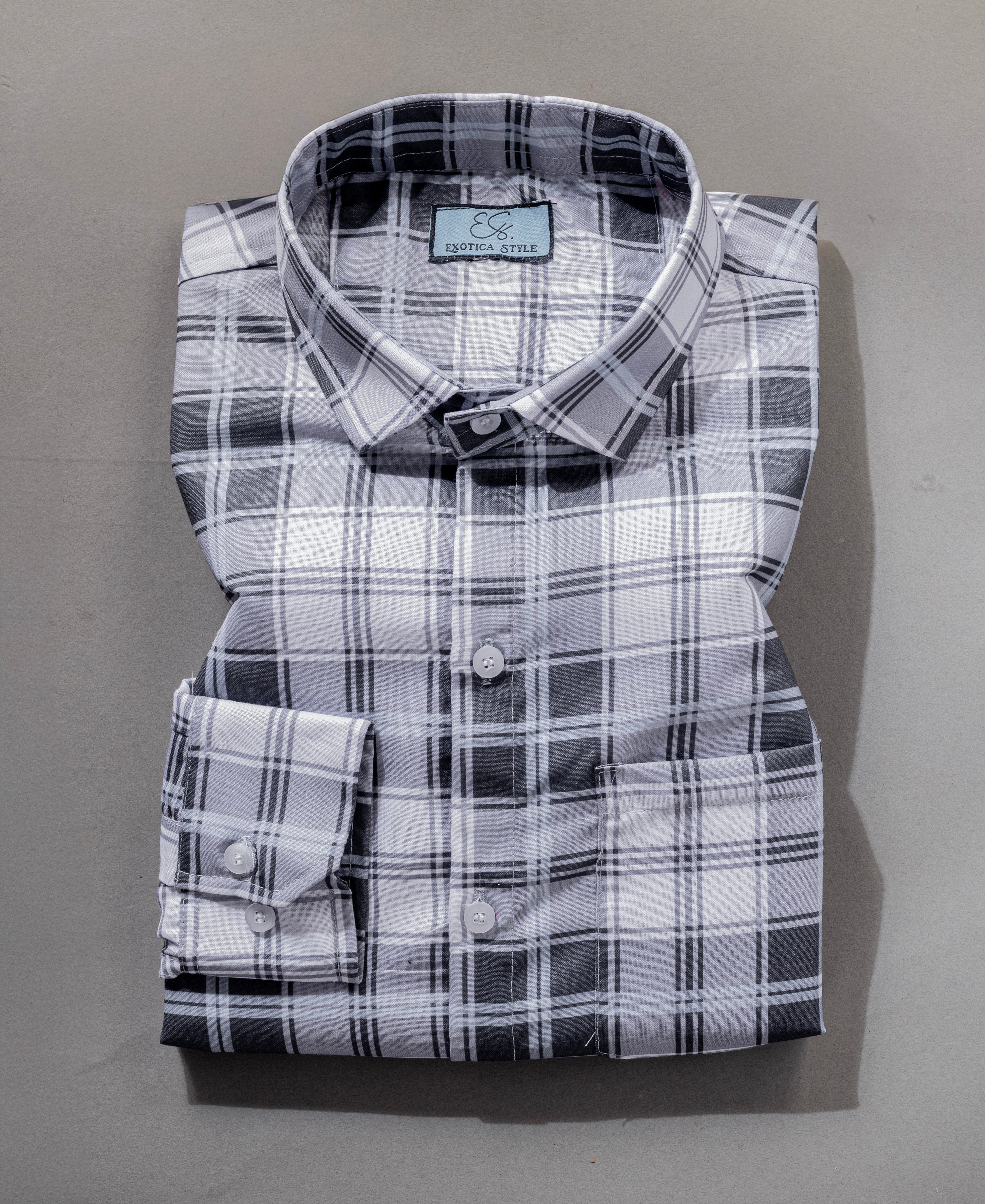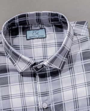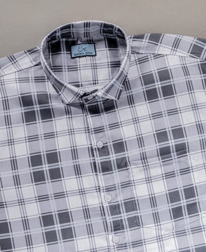 Men’s Black & White Cotton Checked Shirt with Full Sleeve