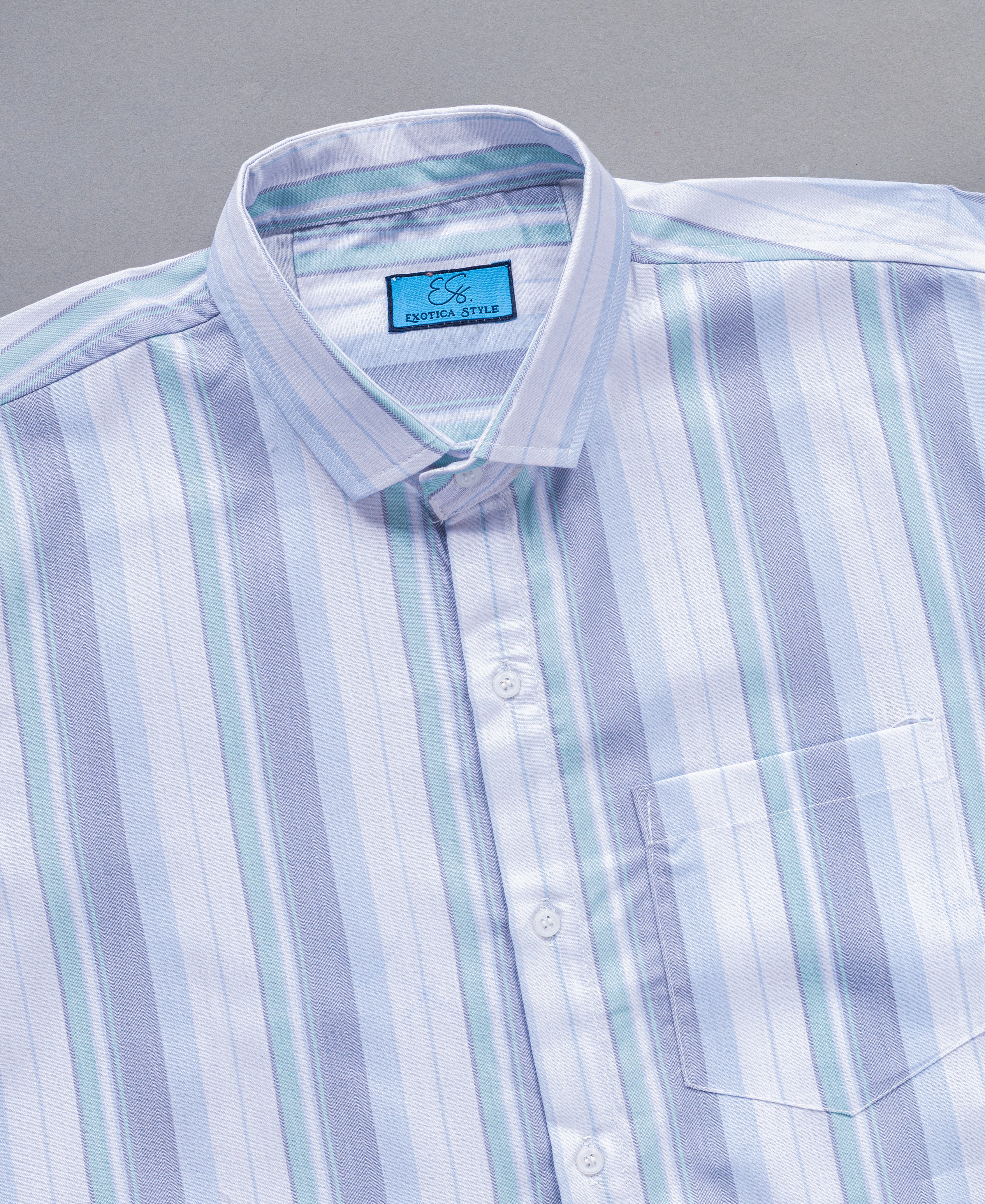 Men’s Cotton Striped Shirt in Blue and White with Pocket