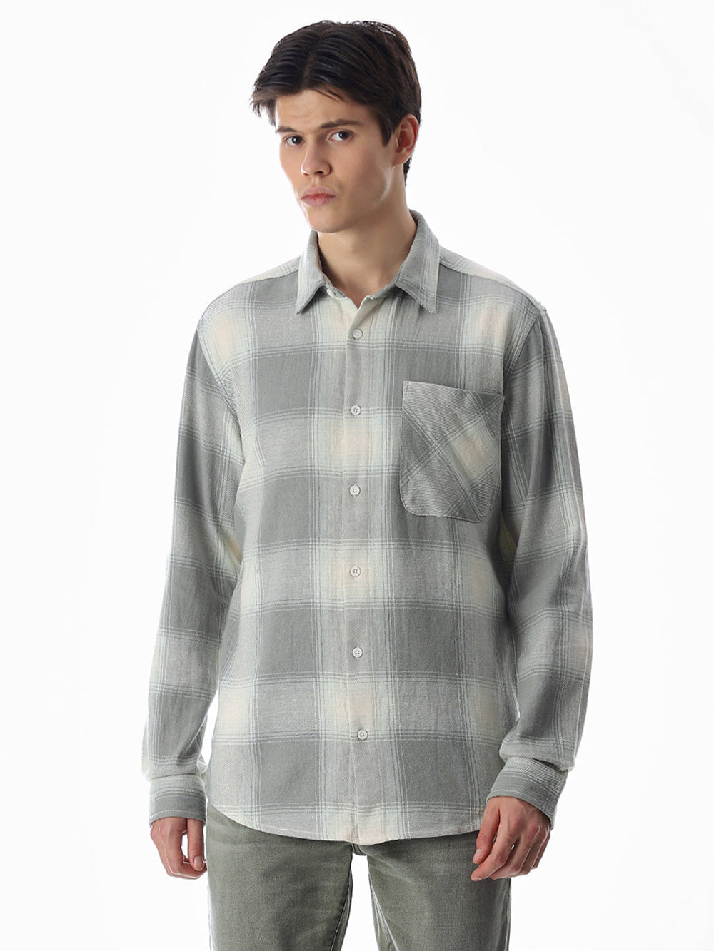 Crafted from soft cotton, this grey checked shirt features a clean button-up front and a handy chest pocket for a timeless casual look.