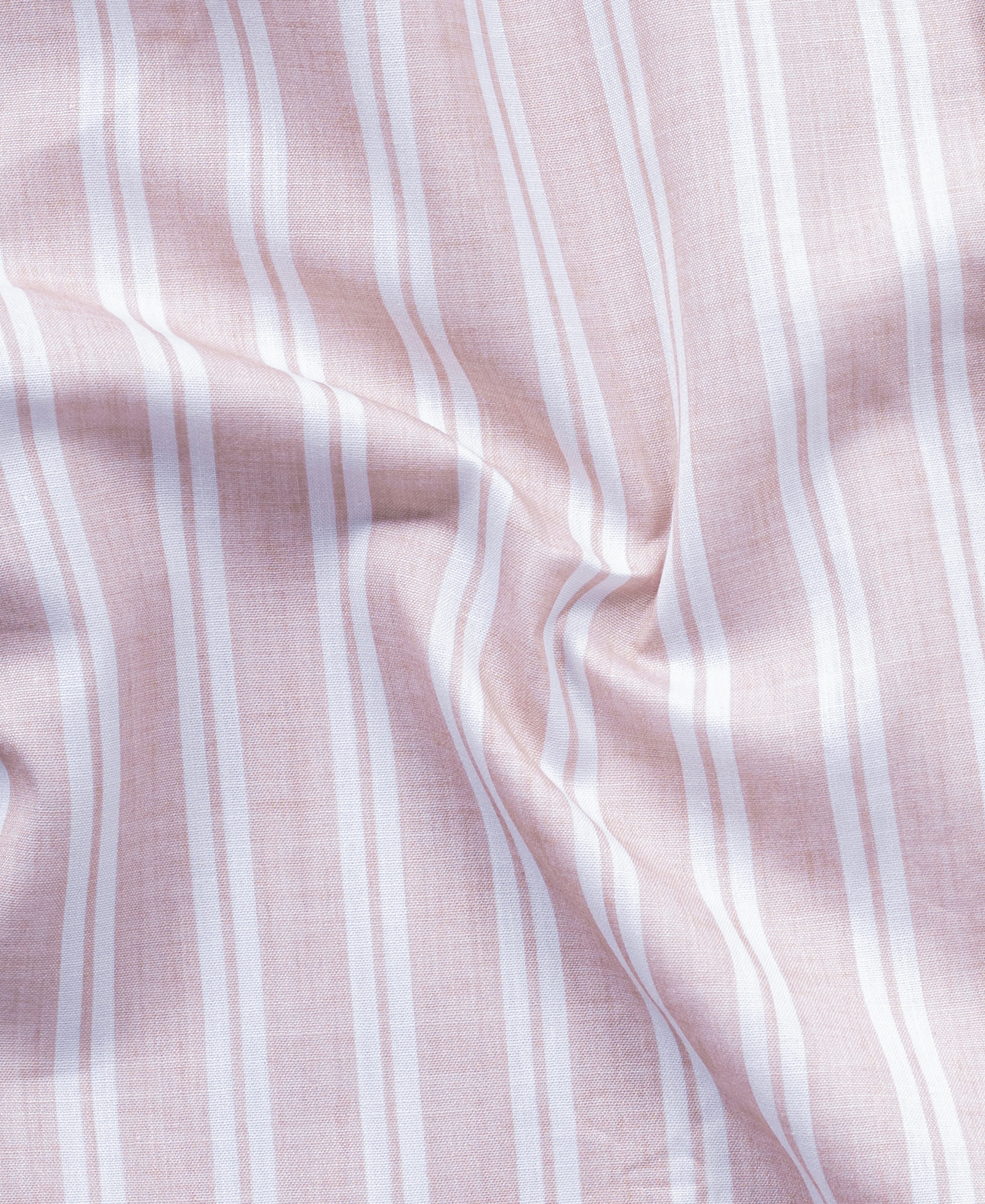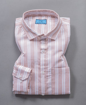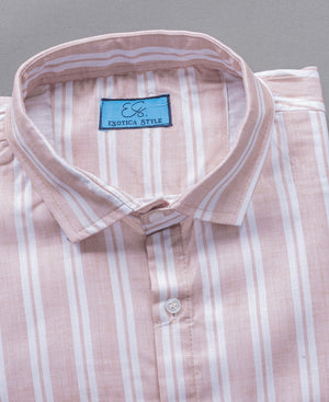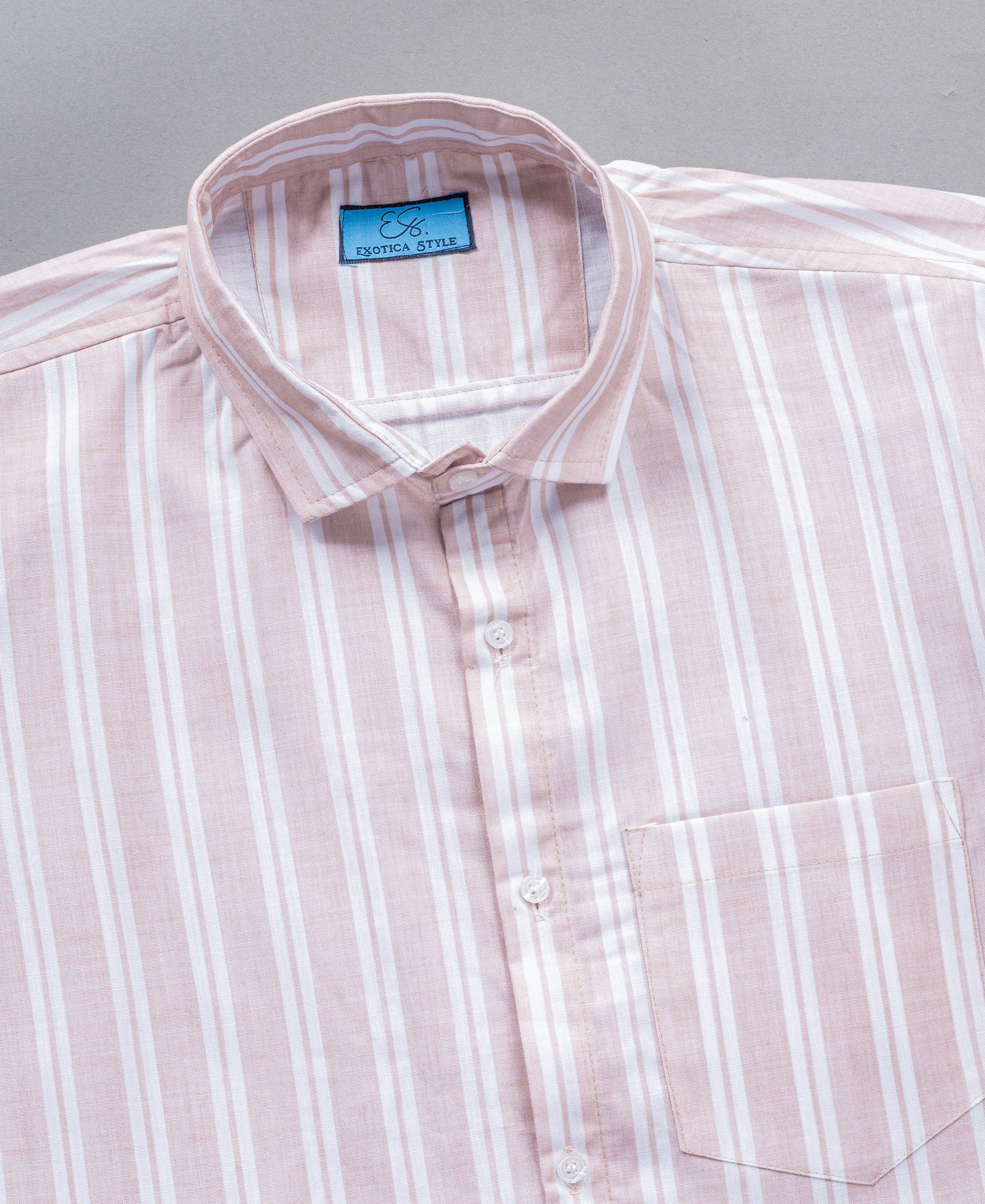 A beige striped cotton shirt with spread collar and chest pocket, perfect for casual or smart-casual wear.